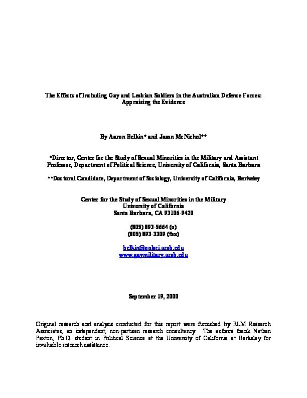 The Effects Of Including Gay And Lesbian Soldiers In The Australian Defence Forces: Appraising The Evidence
