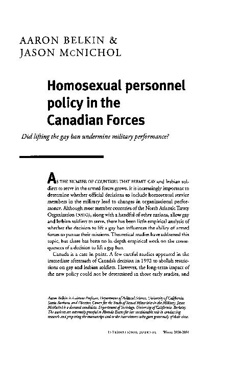 Homosexual Personnel Policy In The Canadian Forces